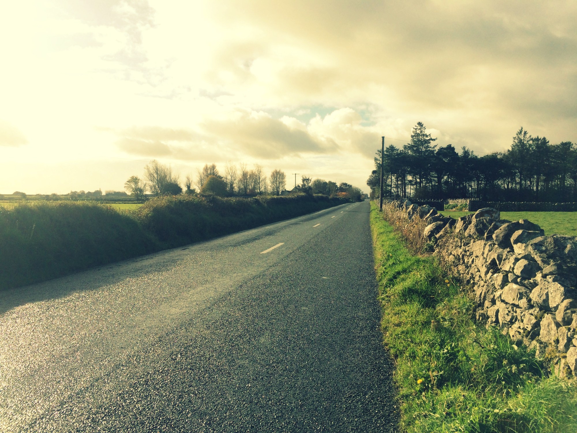 The sun was already setting at 4:00. It would be black by the time the bus dropped me at Corofin Cross. This was a shitty decision. Ireland’s country roads are not meant to be enjoyed by pedestrians. They are narrow, bendy, and without sidewalks. Most of them have stone walls built nearly at the edge of the road so pedestrians can barely even walk through the grass.