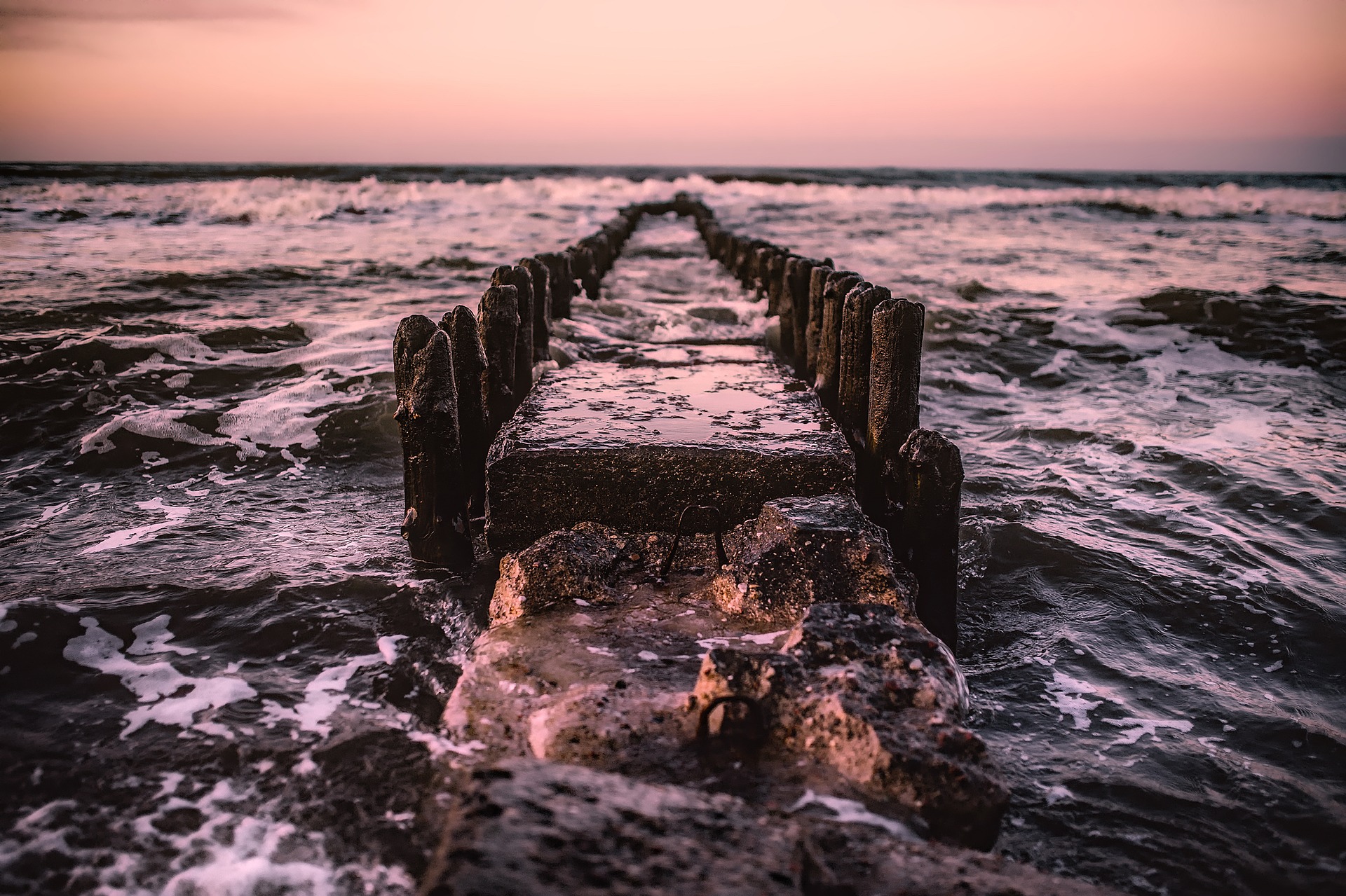 on the waves, crashing against the