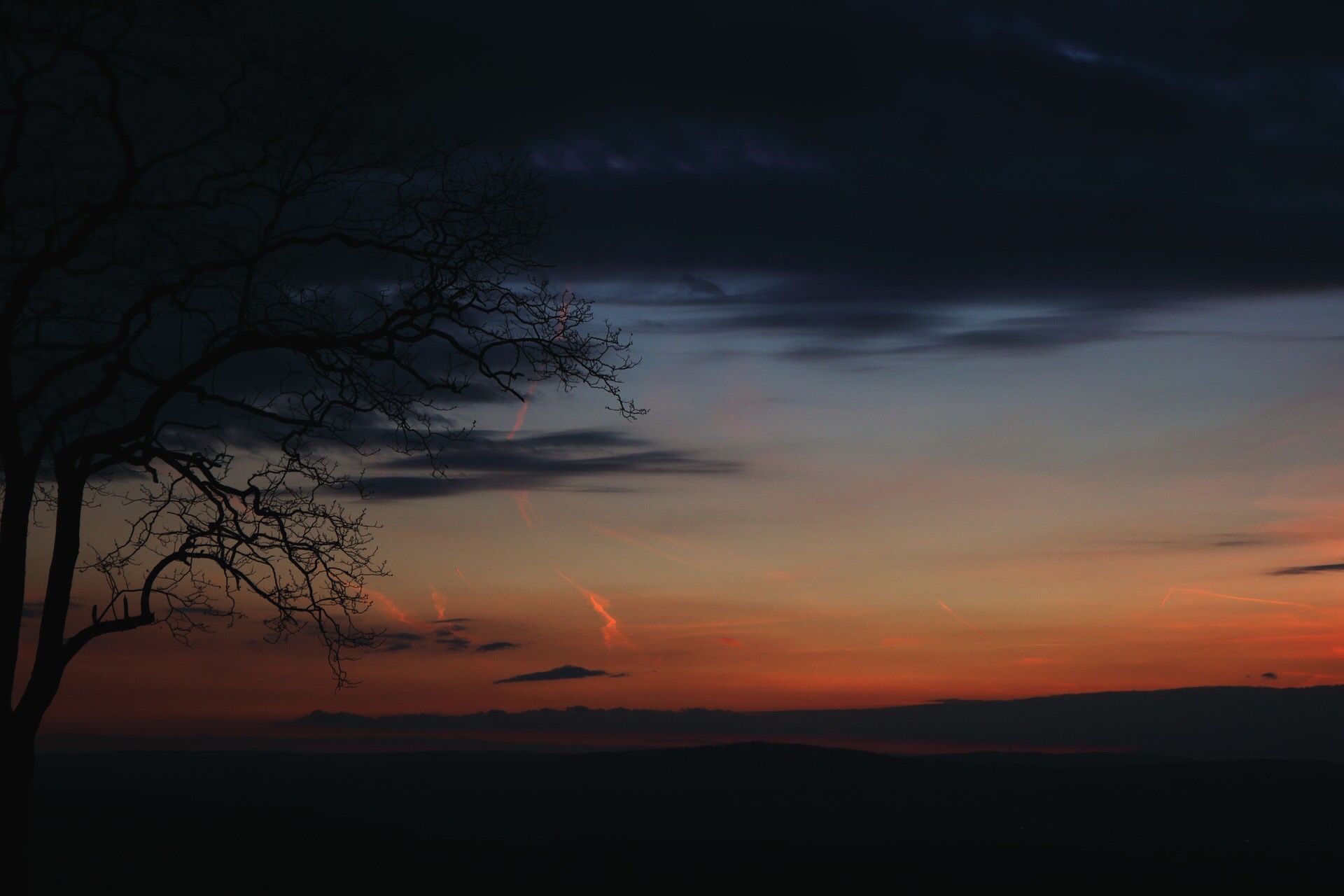 indifferently at a fiery sunset